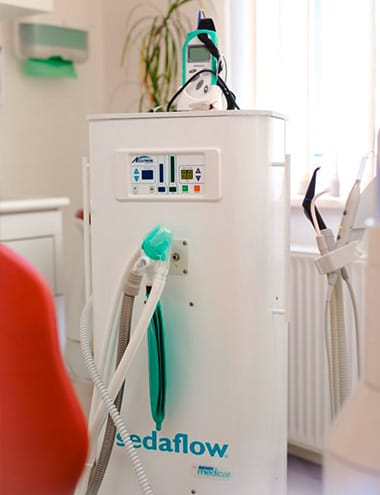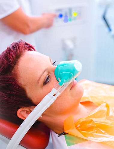 Über eine kleine Nasenmaske wird ein Gemisch aus Sauerstoff und Lachgas verabreicht. Das hilft Ihnen, sich bei der Zahnarztbehandlung entspannen zu können und Angstgefühle zu reduzieren. Ebenso wie die Angst nimmt auch die Schmerzempfindlichkeit ab. Dabei sind Sie aber jederzeit ansprechbar. Die Wirkung von Lachgas ist nach der Behandlung innerhalb weniger Minuten komplett aufgehoben, so dass Sie die Praxis ohne Begleitperson wieder verlassen können.